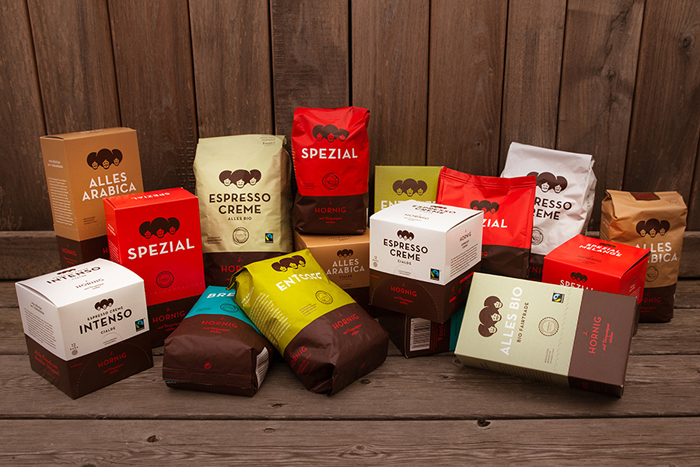 Используя простое штифтовое оформление и абстрактные элементы, австрийское агентство Moodley Brand Identity совершило редизайн кофейного бренда J. Hornig.