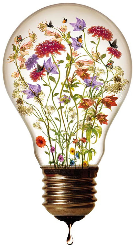 Самый заметный графический элемент этикетки – горящая лампочка в цветущими полевыми цветами внутри. По цоколю лампочки стекает капля. Этого изображения достаточно для того, чтобы сразу привлечь внимание покупателя и заставить его задуматься о значении картинки.