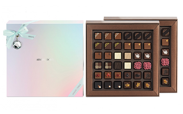 Вдохновленный праздничным настроением дом Giorgio Armani выпустил рождественскую коллекцию сладостей. Armani Dolci Christmas 2013 состоит из традиционных рождественских кексов Panettone, Pandoro, Veneziana и шоколада в виде батончиков и конфет. Начинки праздничных украшений — сладкие джемы — предстают в самых интересных вкусовых комбинациях, в них сочетаются: яблоки, кедровые орехи, изюм и нотки мяты.