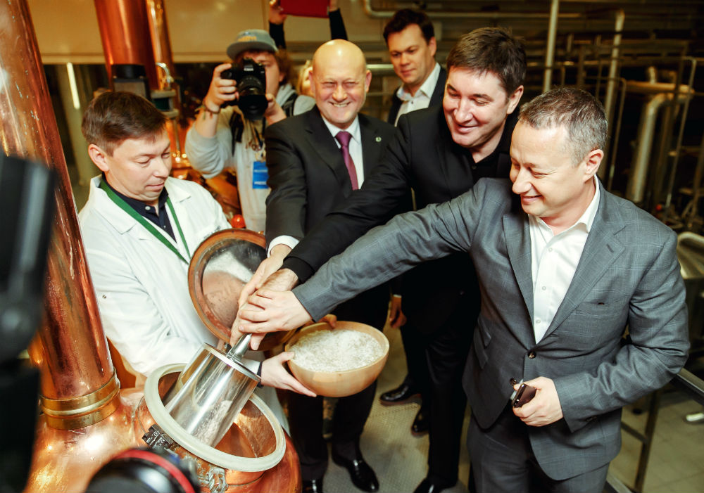 В цехе пивопроизводства, на уникальной мини-пивоварне, предназначенной для создания экспериментальных сортов и ограниченных некоммерческих партий янтарного напитка состоялась закладка ингредиентов пива «Балтика 3».