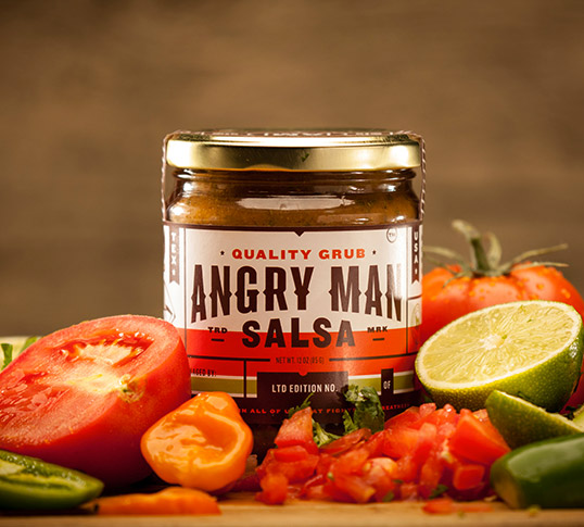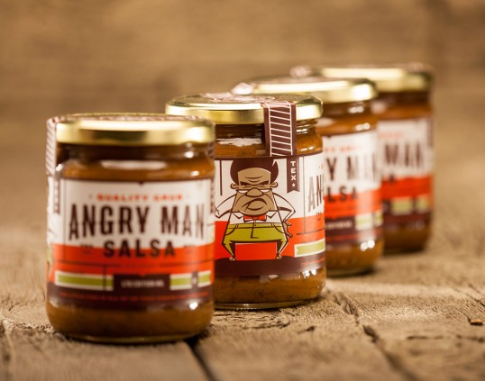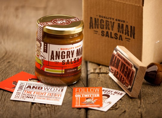 Американским агентством Foundry Co разработан дизайн упаковки для соуса сальса ‘The Angry Man’. Дизайн призван вызывать ощущение высокого качества и ручного труда.