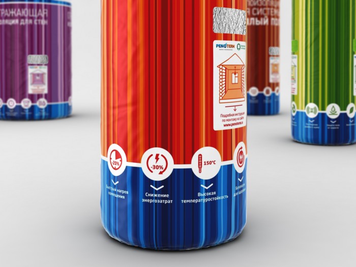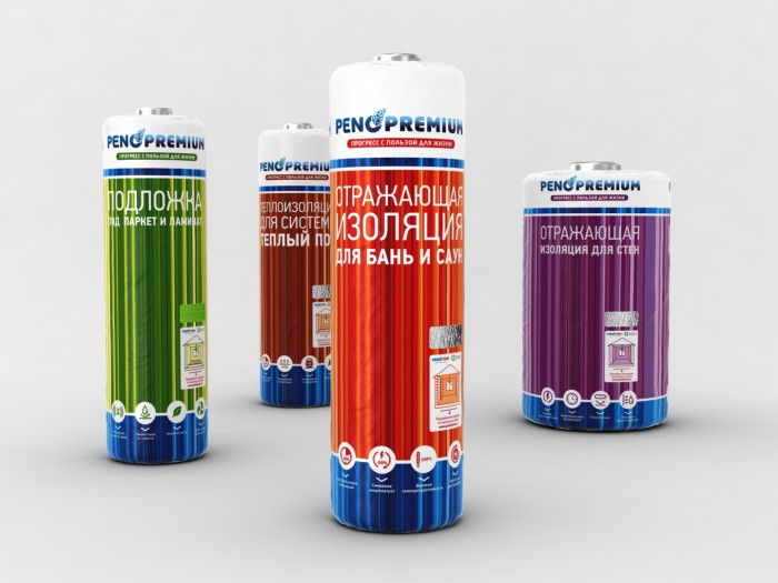 В соответствии с коммуникационной платформой бренда, основой для дизайна упаковки рулонных материалов был выбран образ батарейки (купил — поставил — зарядил дом теплом на годы вперёд).