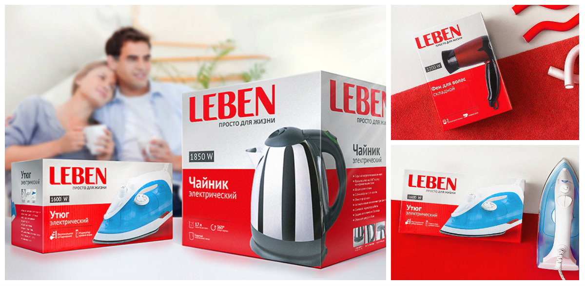 Агентство Brandiziac разработало логотип и дизайн упаковки для новой торговой марки бытовой техники LEBEN для Центра оптовой торговли «Гала-Центр».