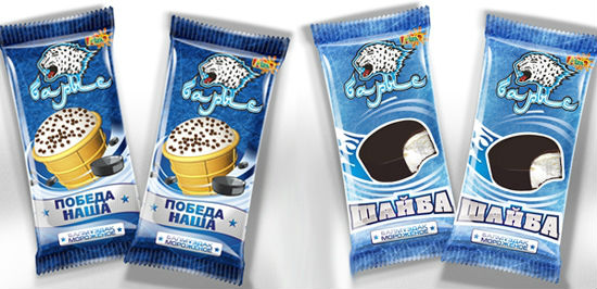 Хоккейный клуб «Барыс» представляет фирменное лакомство: сливочное мороженое в шоколаде «ШАЙБА», а также сливочное мороженое с шоколадной крошкой «ПОБЕДА НАША».