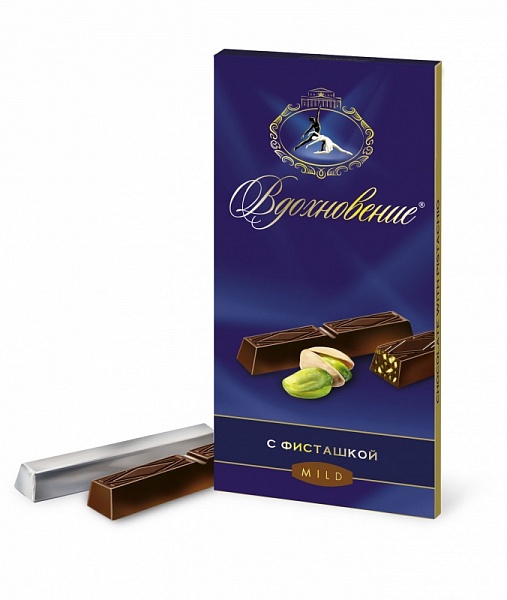 Второй подарок – это изысканный шоколад «Вдохновение»® с фисташкой. Благородный вкус ореха придает новинке приятную терпкость. Оригинальное сочетание шоколадной массы и кусочков орехов создано для истинных гурманов и ценителей элитного шоколада с добавками.