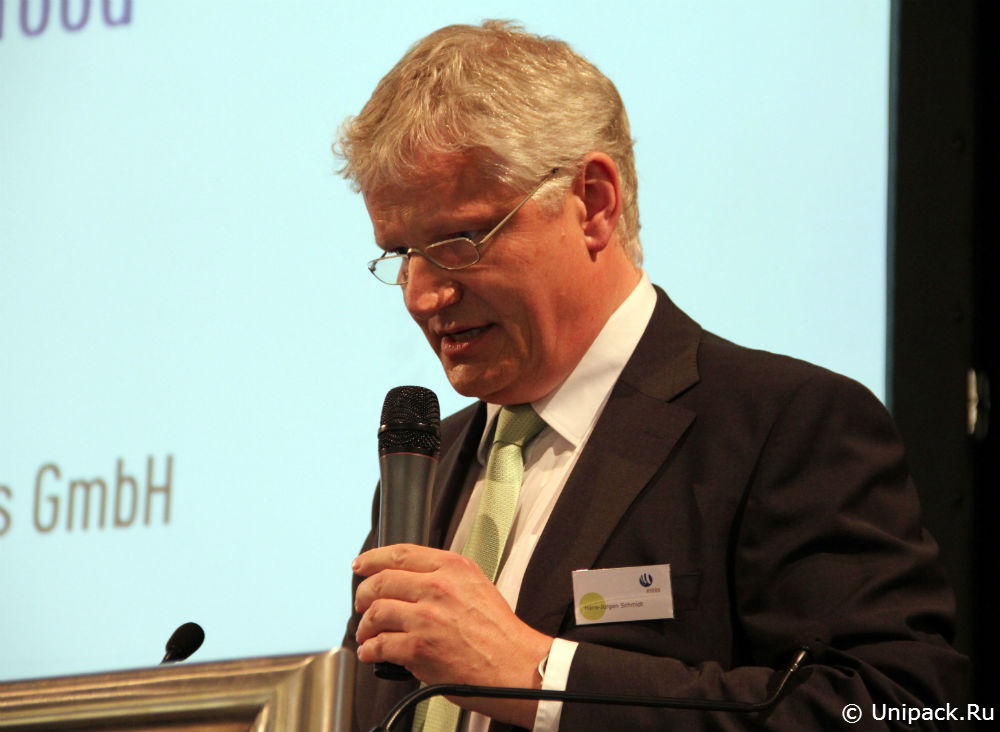 В рамках деловой программы в Innovationparc Packaging на выставке Interpack 9 мая состоялась презентация Ханса-Юргена Шмидта (Hans-Jürgen Schmidt), руководителя по экологии продукции компании Hydro Aluminium Rolled Products GmbH на тему «Алюминиевая упаковка помогает сократить количество отходов продовольствия».