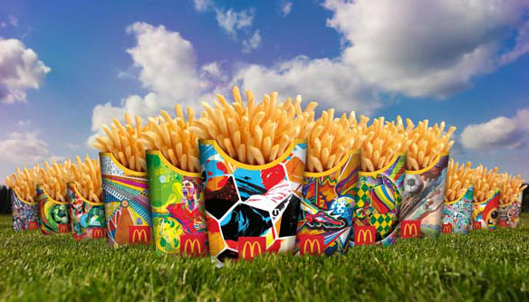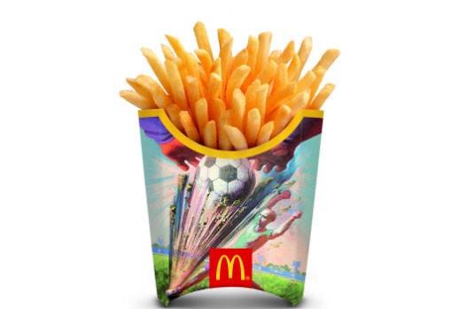 Начиная с 26 мая, McDonalds меняет оформление широко известной упаковки картошки фри. Впервые за всю историю бренда, дизайн изменится на упаковках по всему миру, и делается это в честь предстоящего 20-ого чемпионата мира по футболу ФИФА, который состоится в Бразилии.