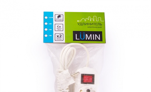 Дизайн-студия «ClickCake» (Беларусь) разработка логотип и упаковку для электрического удлинителя «Lumin».