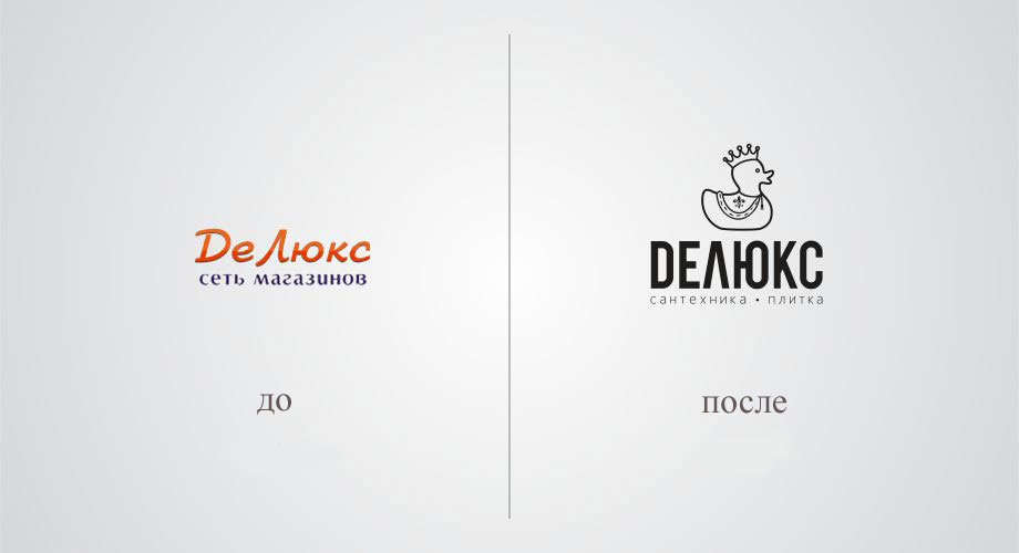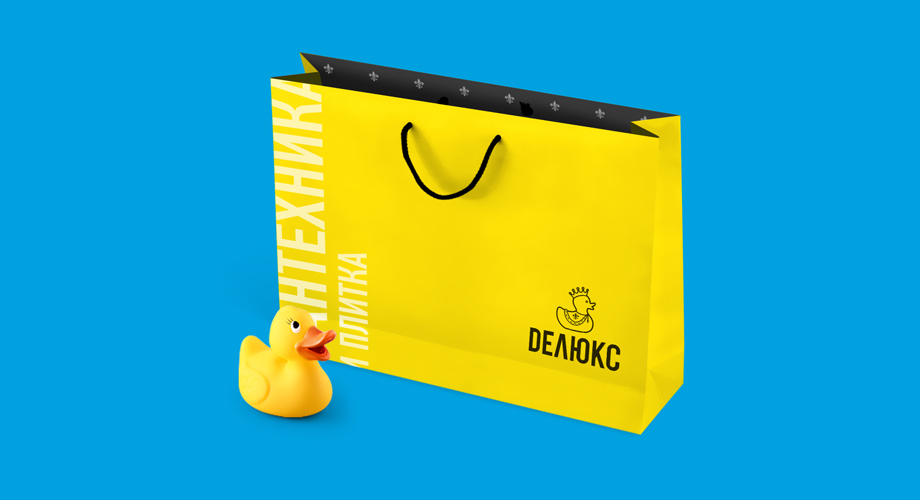 Сеть давно известна на рынке под названием «Dелюкс», однако продукция находится в среднем ценовом сегменте. Тем интереснее для агентства было с юмором обыграть в айдентике столь статусное название, уйдя от его претенциозности.