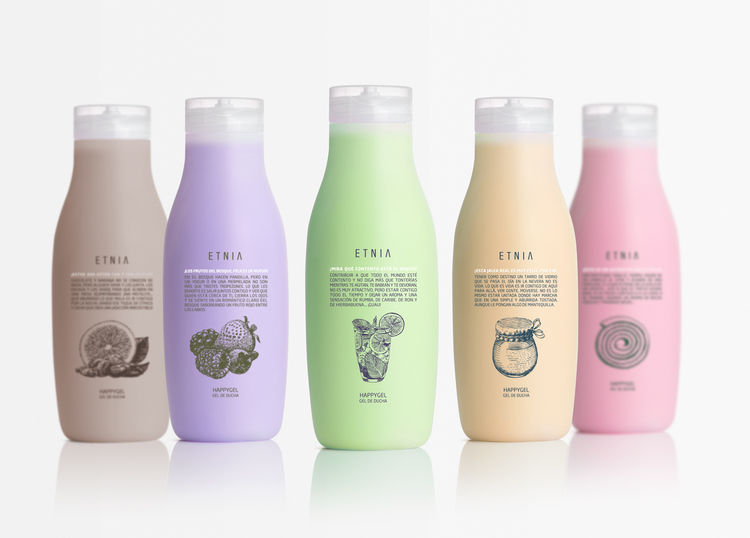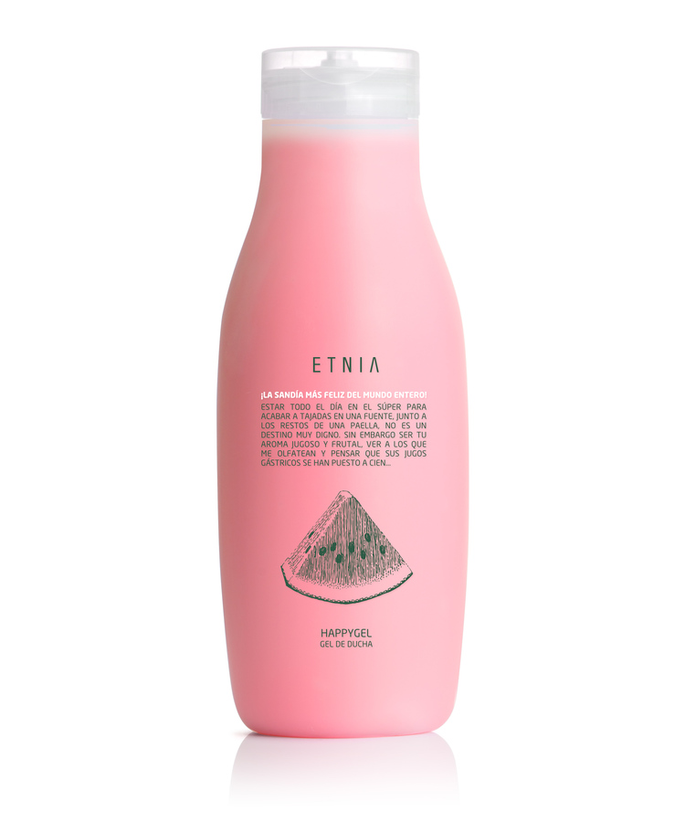 Новый бренд средств по уходу за телом ETNIA HAPPY рассчитан на молодых людей, обладающих чувством юмора. Линейка гелей для душа и лосьонов для тела включает необычные ароматы: жевательная резинка, печенье, мохито, а также вполне традиционные вроде арбуза.