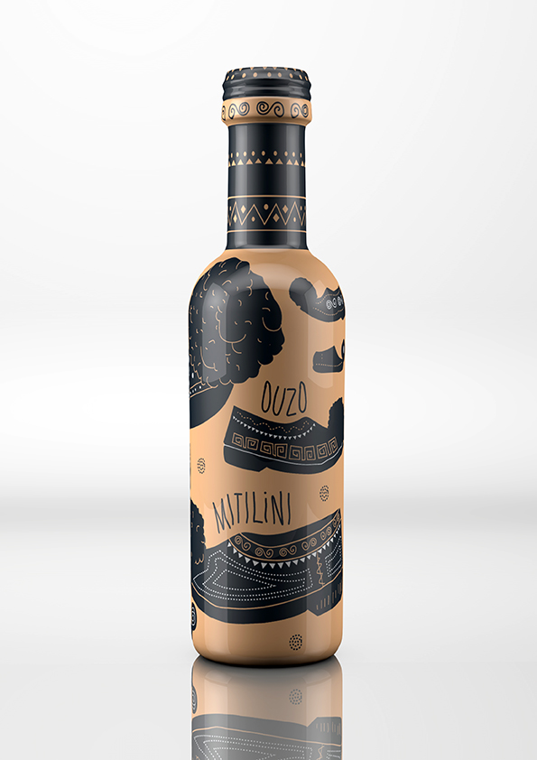 Узо – это бренди с анисовой вытяжкой, это напиток, который повсеместно производится в Греции. Перед дизайнерами стояла задача, выделить бренд на полке с сувенирной продукцией. Изображения и символы на упаковке тесно связаны с традициями и культурой Греции. Иллюстрации выполнены в стиле чернофигурной вазописи.