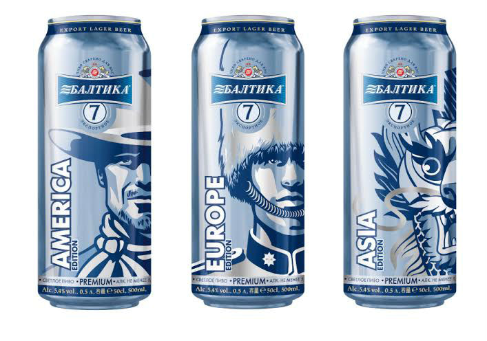 «Балтика №7» - пиво, вкус которого знают и любят на 5 континентах. Серия коллекционных банок «семерки» раскрывает суть и подчеркивает особенности континентов, где продается этот сорт пива. Так, в серию вошли 3 банки объемом 0,5 л с оригинальным дизайном, в котором воплотились характерные черты Америки, Азии и Европы.