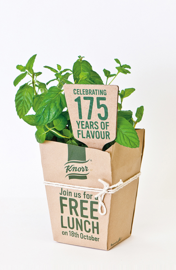 В честь своего 175-летия, немецкий бренд Knorr устраивает обед для 800 специальных гостей. В качестве приглашения, каждому гостю доставили горшок с растением. Таким образом, Knorr не просто приглашает на празднование, но и воодушевляет начать выращивать свой садик.