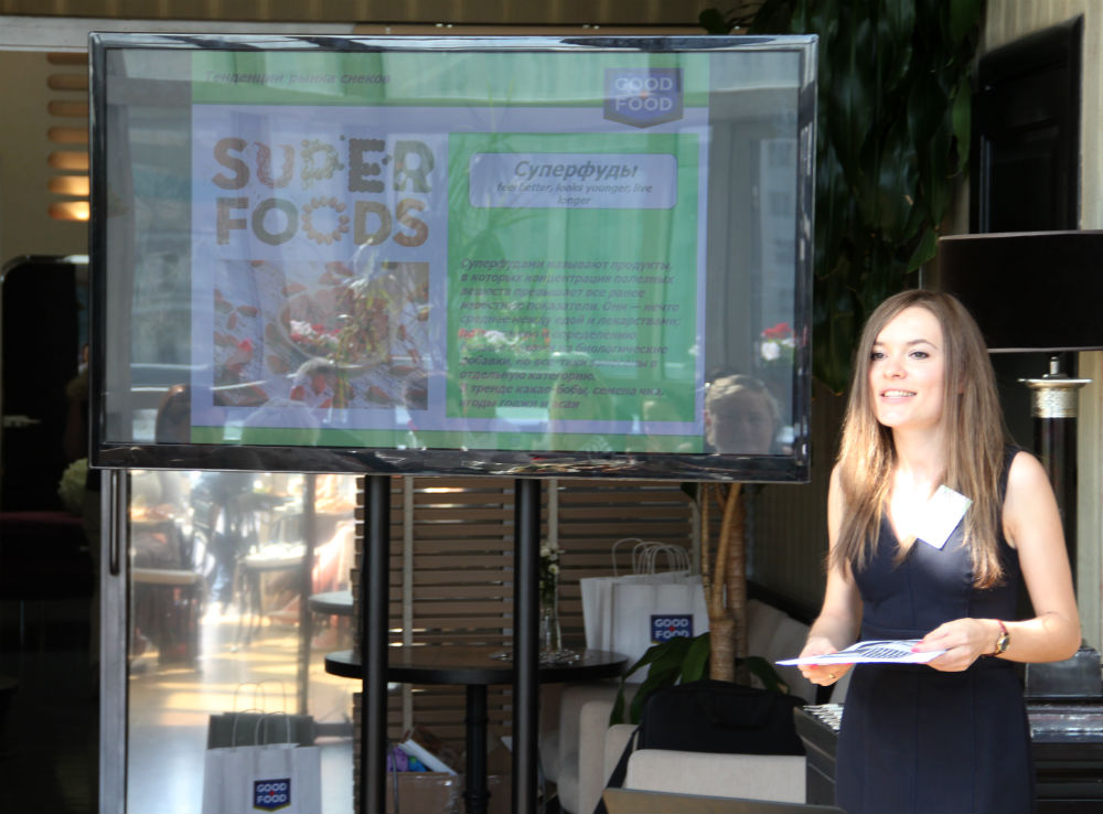 Также на мероприятии были представлены новые продукты: функциональные смеси ТМ GOOD FOOD HEALTHY, ТМ GOOD FOOD BEAUTY и новый сладкий снек «Кешью с гранатом». Новые вкусы, необычные текстуры, использование суперфудов и других нестандартных ингредиентов были по достоинству отмечены всеми участниками мероприятия.