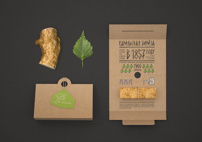 «В упаковке, используя понятный и наглядный язык инфографики, мы приводим факты и цифры о Карелии и ее достопримечательностях. Визуальное решение привлечет внимание гостей не только стильным исполнением, но и умным наполнением. Получается двойное, неожиданное и приятное приобретение. Покупая скалку, вы получаете в подарок важные знания о карельской березе, а если решите остановиться на ювелирных украшениях, то многое узнаете про петроглифы. Такую упаковку захочется сохранить, чтобы в нужный момент достать ее и снова обо всем вспомнить», - сообщили в :OTVETDESIGN.