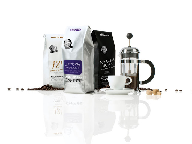 В студии разработали бренд, айдентику, дизайн упаковки, вебсайта, а так же розничного магазина Laughing Man Coffee and Tea. Первыми продуктами в этом магазине стали чай, кофе и шоколад.