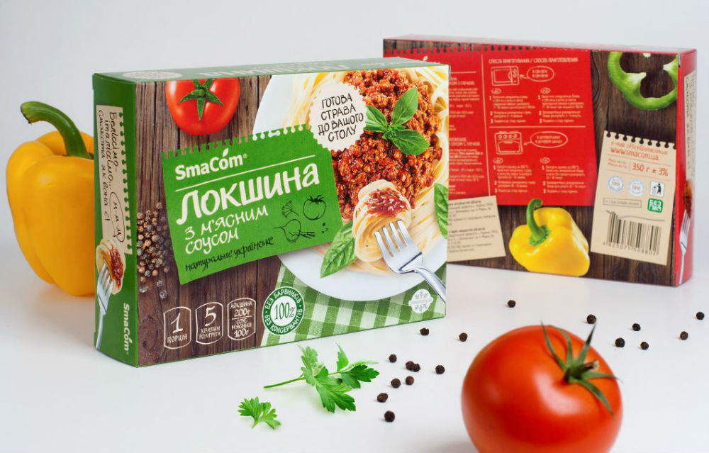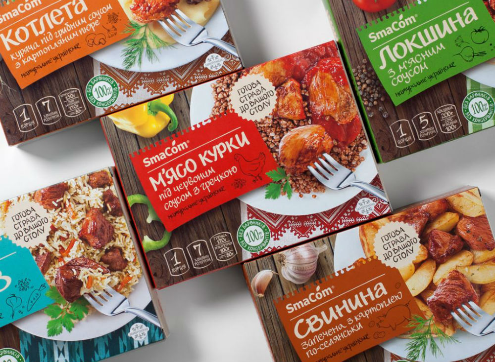 В cередине лета компания «Пирятинский деликатес» (Украина) выпустила на рынок новую линейку готовых блюд под брендом SmaCom. Дизайн серии упаковок разработан брендинговой компанией POLARIS.