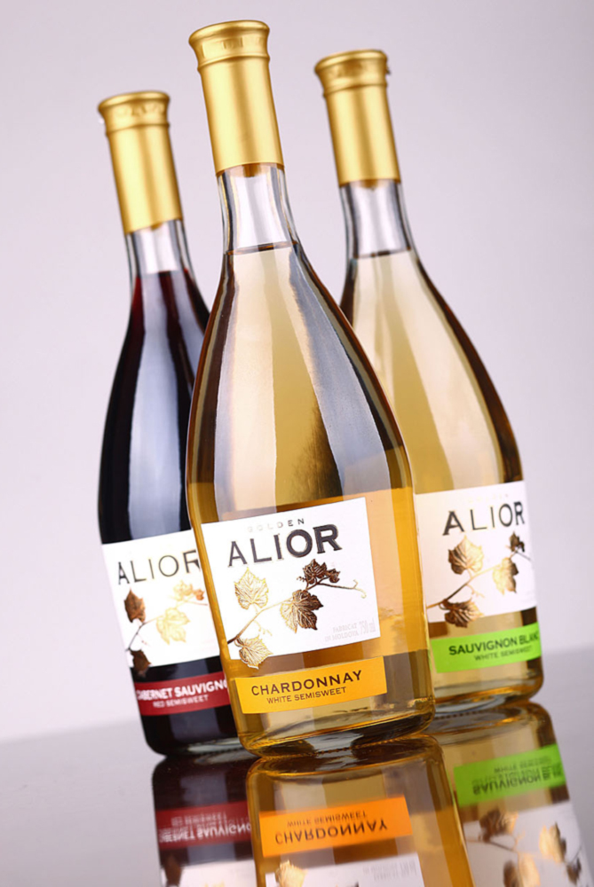 Перед дизайнерами была поставлена задача – разработать дизайн этикетки для серии полусладких, ординарных вин под торговой маркой “ALIOR”. Один из предложенных концептов дизайна, который впоследствии и был утвержден заказчиком, состоял в представлении классической винной тематики в рамках современной интерпретации. Лаконичная манера исполнения была удачно обыграна типографией в результате чего получился традиционный продукт в современном представлении.
