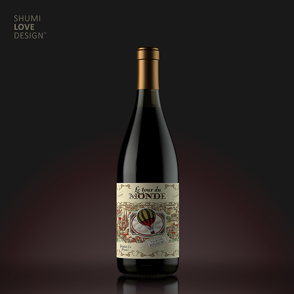 Агентство Shumi Love Design разработало дизайн этикеток для вин LE TOUR DE MONDE. В основу концепции заложен сюжет путешествия на воздушном шаре из популярного приключенческого романа французского писателя Жюля Верна «Вокруг света за восемьдесят дней» (Le tour du monde en quatre-vingts jours).