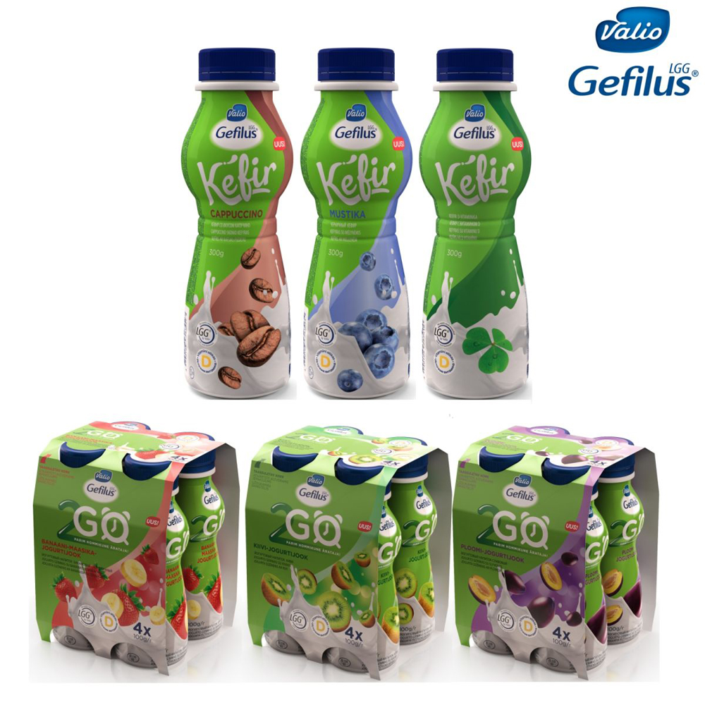 Начиная с октября на прилавки магазинов поступят новые йогуртовые шоты Valio Gefilus 2GO со вкусом киви, банана и клубники, и сливы, которые будут доступны в закрывающихся 100-граммовых бутылочках. Это первые изготовленные в Эстонии йогуртовые шоты.