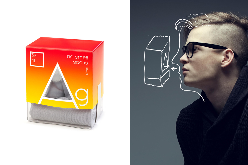 Агентство «Свое мнение» разработало дизайн упаковки для необычных носков ARGENTUM Socks. Производитель позиционирует их как носки без запаха.