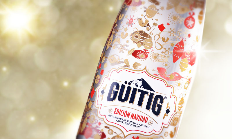 Бренд газированной минеральной воды Güitig снова выбрал дизайнеров из BridgerConway для создания упаковки специальной партии, посвященной приближающемуся рождеству (Christmas Special Edition). По словам дизайнеров, они разработали облик напитка с тремя разными вкусами – Peppermint Twist, Apple Candy и Fruit Punch. Учитывая особенности печати на таре и упаковке, специалисты агентства разработали дизайн стеклянной бутылки ёмкостью 700 мл и пластиковой ПЭТ-бутылки ёмкостью 500 мл. Для этой специальной серии был выбран стиль, который рассматривает рождество с нетрадиционной и классической точки зрения и который сосуществует с премиальным обликом бренда. Агентство работает с брендом уже более двух лет. Первоначальная идея этой партии бутылок Güitig (особенно стеклянной) состояла в том, чтобы выделить продукт на полке в магазине и сделать его предметом коллекционирования.