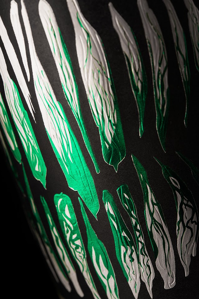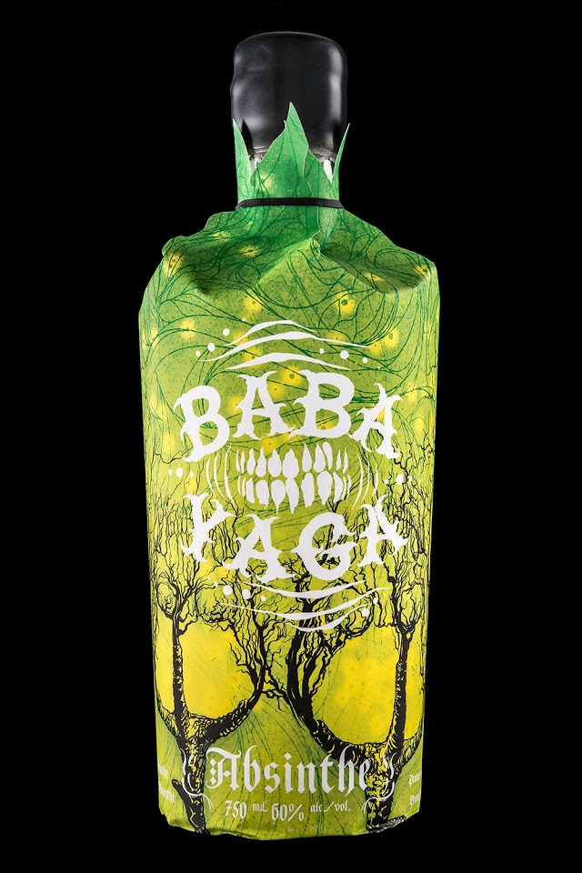 Такую легенду придумали в канадском агентстве Hired Guns Creative для нового абсента от винокурни Arbutus Distillery. Наличие обертки, позволило специалистам агентства разгрузить этикетку от информации. Вместо этого дизайнеры изобразили железные зубы Бабы Яги, внушительность которым придают два вида фольги и тисненые детали.