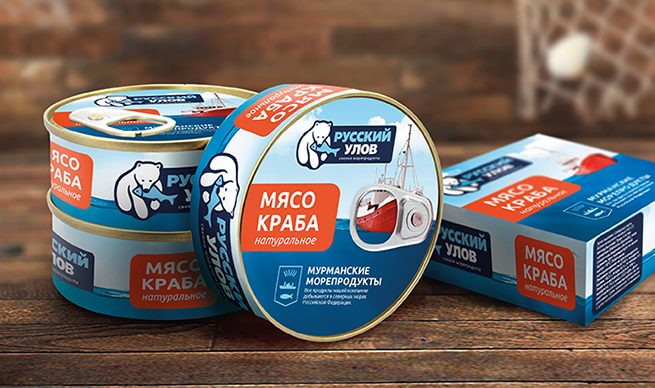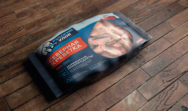 Упаковка подчеркивает общую идею бренда. В дизайне упаковки акцент сделан на прозрачное «окно», позволяющее покупателю визуально оценить продукт. Также акценты сделаны на торговую марку и категорию продукта, которые легко считываются. Фоном расположено синее море, по которому плывет траулер. На упаковке используются пиктограммы и расшифровка, которые позволяют понять, где был улов: «Мурманские морепродукты», «Дальневосточные морепродукты» и др.