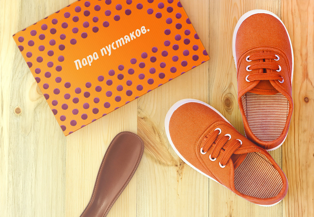 Из пластилиновых букв было набрано не только новое название, но и слеплен целый шрифт. Пластилиновая детская обувь стала основным бренд-мотивом «Пары пустяков».