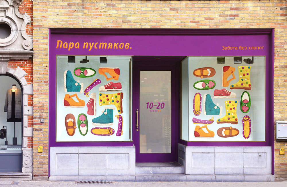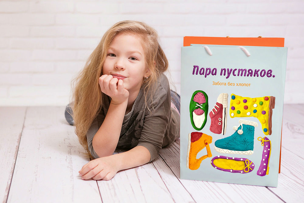 «"Пара пустяков" — название, указывающее на простоту выбора и покупки детской обуви в этом магазине. Ведь она такая маленькая, буквально пустячная, и её — пара! В слогане «Забота без хлопот» эта тема продолжается, подчёркивая заботу о детях. В основу визуального стиля легла одна из самых любимых детских забав — лепка из пластилина», - сообщали в агентстве Punk you.