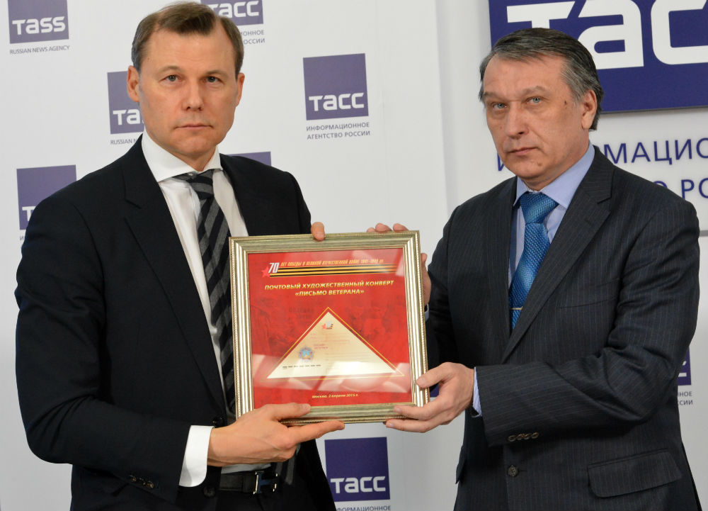 В ходе пресс-конференции «Россвязь и Почта России — к 70-летию Великой Победы» заместитель руководителя Федерального агентства связи Владимир Шелихов передал генеральному директору Почты России Дмитрию Страшнову 3 млн писем-треугольников для доставки ветеранам Великой Отечественной войны и труженикам тыла в преддверии 70-летия Великой Победы.