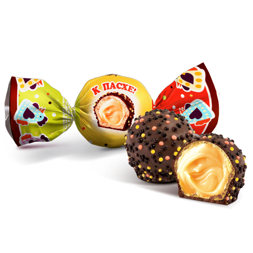 Помимо праздничных наборов, «АВК» предложила сезонные сладости, которые не имеют аналогов на украинском рынке кондитерских изделий. К созданию весовой конфеты «К Пасхе!» технологи «АВК» подошли неординарно: шоколадное изделие декорировано в стилистике праздника и посыпано разноцветным сахарным декором в форме маленьких шариков.