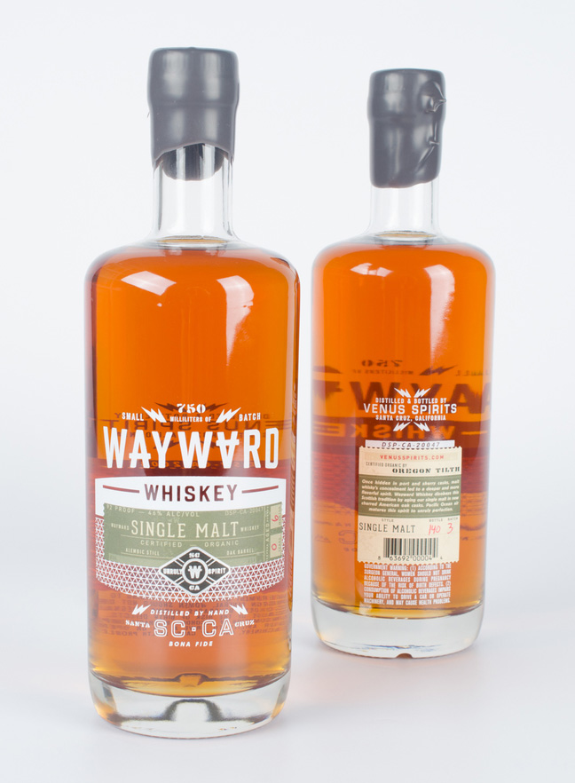Дизайн виски прямолинейный и четкий, современный, но не лишенный классики. Разглядывая этикетки, замечаешь множество тщательно проработанных деталей. Это вызывает уважение и доверие к бренду. Кроме всего прочего, на этикетке можно рассмотреть молнии. Они символизируют зажигательное свойство виски: «Wayward Whiskey вдохнет в вас жизнь».