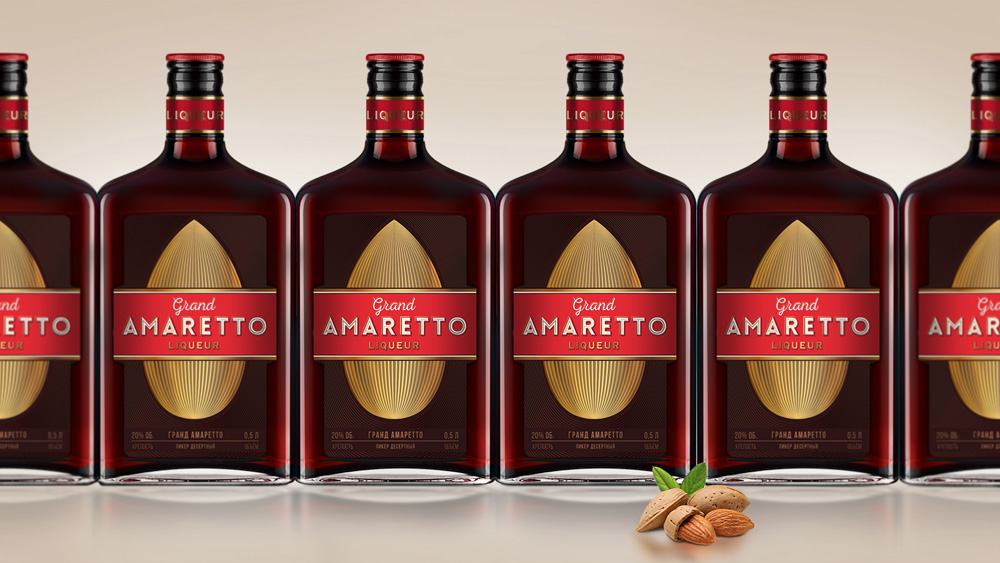 Студия «ARMBRAND» (Минск) разработала новый дизайн упаковки ликера «Grand Amaretto» для ЗАО «Родник».