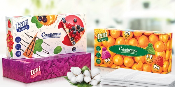 Московская студия «Quantum Graphics» провела редизайн упаковки бумажных салфеток «Tolli».