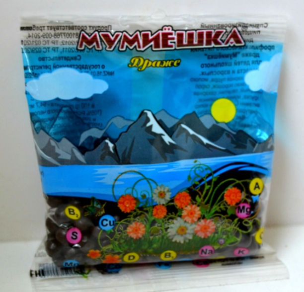 Драже «Мумиёшка» обладает высокой биологической ценностью и хорошими вкусовыми качествами, что позволяет его использовать в ежедневном рационе детей и обеспечивает профилактику простудных заболеваний, способствует здоровому росту ребенка, снижает аллергический риск, оказывает мощное общеукрепляющее действие.