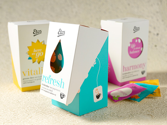 Etos – это самые известные аптекарские магазины в Нидерландах. Они привлекают покупателя большим ассортиментом от разных брендов. Владельцы сети решили выпустить чайную линейку под собственной торговой маркой и обратились в агентство Milford с задачай разработать дизайн упаковки.