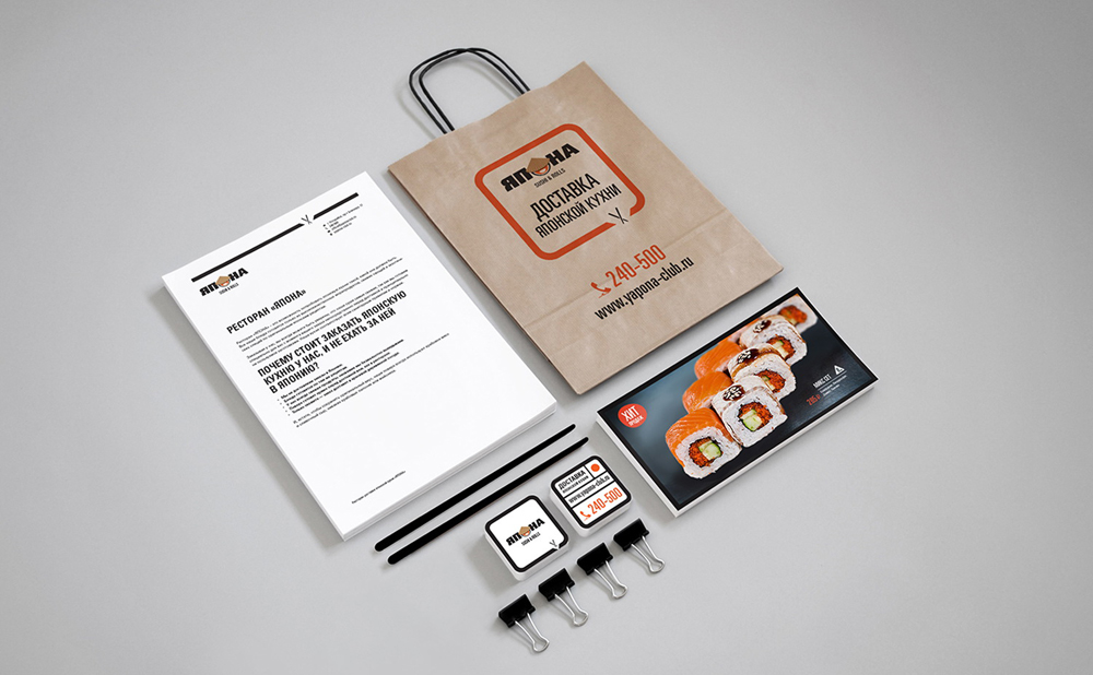 «Япона» — это ресторан доставки японской кухни. Перед агентством Ideabrand стояла задача разработать фирменный стиль, включая дизайн логотипа, печатной продукции, наружной рекламы и гайдлайна по оформлению фирменных носителей.