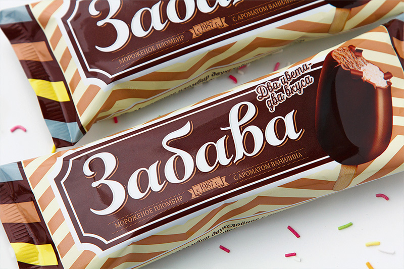 Белорусская студия Fabula Branding провела редизайн этикетки одного из самых популярных сортов мороженого «Забава» для компании «Ингман». Стремление создать легкий, изящный дизайн и придать ему особую ностальгическую нотку – лето! детство! парк! знакомый вкус! – обусловило стилизацию упаковки в ретро-духе.