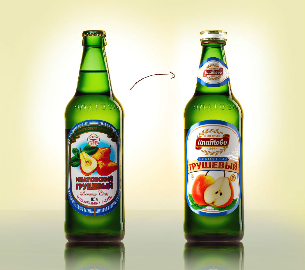 «После проведенного анализа уже сложившейся кодировки было решено: взять за константу цветовую гамму и контурный элемент из старых этикеток, максимально увеличить и сделать аппетитной фудзону, а так же акцентировать внимание на читабельном названии напитка, выделив надпись «Грушевый». При этом новый логотип мы так же сделали максимально большим, чтобы улучшить бредовую узнаваемость», - сообщили креаторы.
