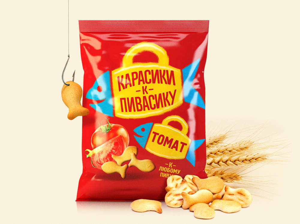 Задача дизайнеров заключалась в том, чтобы упаковать крекеры в форме рыбок и намекнуть на то, что они особенно хороши с пивом.