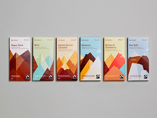 Команда дизайнеров из австралийской студии Swear Words разработала бренд премиального шоколада PICO. Это безглютеновый, вегетарианский продукт, маркированный по системе сертификации Fairtrade.
