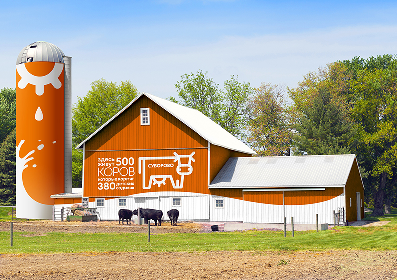 Учитывая специфику проекта, Агентство DDVB разработало для «Суворово» открытый, яркий и очень «живой» визуальный образ. Новый дизайн задаёт тон тёплому, доброжелательному, лёгкому и позитивному характеру коммуникаций бренда. В качестве главных атрибутов было выбрано стилизованное изображение «солнышка-вымени», жизнерадостный оранжевый цвет и простые иллюстрации.