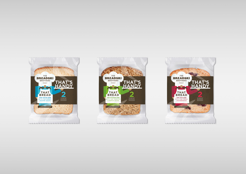 Тот факт, что фамилия основателей – Chlebicki, где Chleb означает «хлеб» или «bread» по-английски, натолкнул дизайнеров на мысль назвать бренд 'The Breadski Brothers'. Также они разработали главных героев – трех братьев-пекарей. Каждый из братьев представляет свой вид хлеба, кроме того легкую дифференциацию обеспечивает цветовая кодировка.