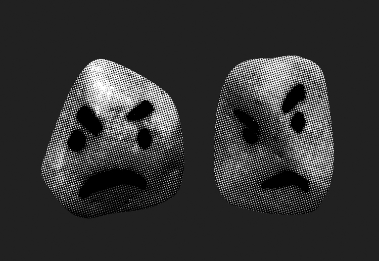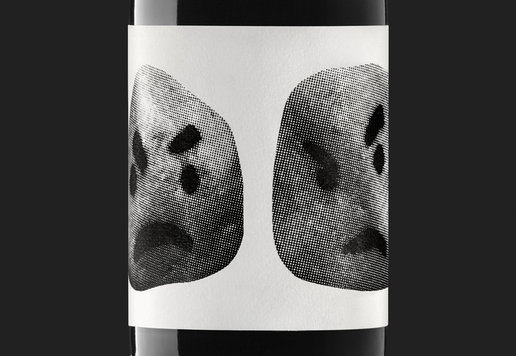 Дизайн этикетки выполнен в стиле минимализма. Монохромное растровое изображение двух камней с сердитыми лицами придают бренду яркую индивидуальность. Камни, безусловно, являются главными персонажами дизайна, все остальное, включая название, скромно разместилось по периметру.