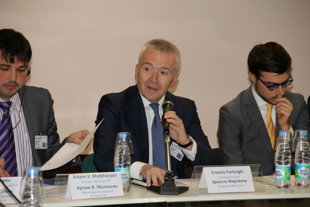 В рамках деловой программы выставки «Агропродмаш-2015» 5 октября прошёл круглый стол на тему «Сельское хозяйство и пищевая промышленность в России. Новые возможности и цели итало-российского партнёрства». Итальянцы – давние партнёры России. Они торговали с СССР ещё во времена холодной войны. Сейчас политика импортозамещения влияет на ввоз иностранных технологий в пищевую промышленность. Итальянская фирма Confindustria Russia собрала этот круглый стол, чтобы сфокусировать внимание на новых возможностях, которые предлагает российский рынок и эффективных способах преодоления существующих ограничений для передачи новых технологий российским инвесторам и предпринимателям.
