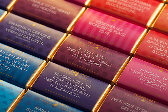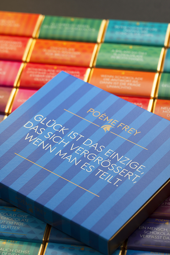 Студия дизайна Studio Schoch из Цюриха разработала дизайн упаковки для шоколадных плиток компании Chocolat Frey. Новинка Poème Frey не предназначена для розничной продажи, она будет доступна только в центре для посетителей фабрики Chocolat Frey.