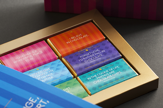 У новой линейки – поэтическое название и 44 наименования. Каждая плитка имеет свое настроение и философское изречение. Например: «Если в раю нет шоколада, то я туда не собираюсь» или «Счастье – это единственное, что увеличивается, если им делиться».