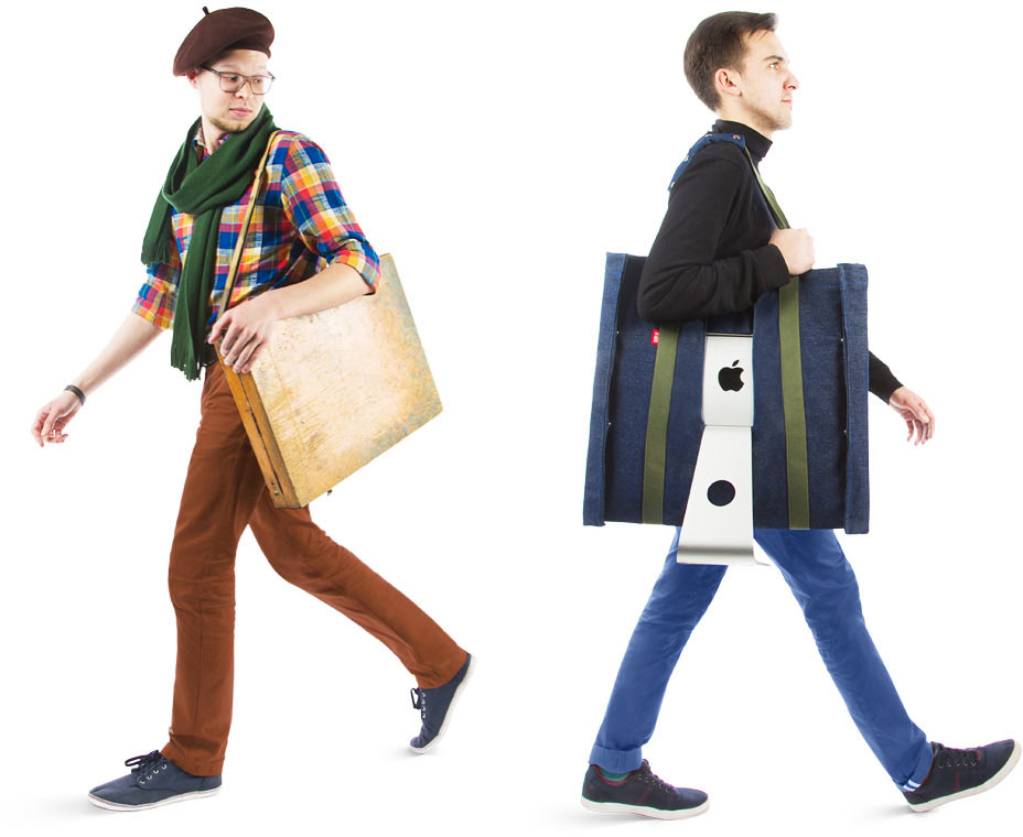 Студия Артемия Лебедева представила новую работу - сумку "Айвоська". Задача заключалась в создании сумки для переноски аймака или эппловского монитора.