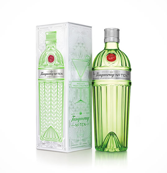 Джин Tanqueray No. TEN – это продукт супер-премиальной категории. Он впервые появился в 2000 году. Свое название джин получил по номеру небольшого перегонного куба, в котором производится. Секрет высокого качества джина заключается в использование небольшого перегонного куба «Tiny Ten». В составе напитка – цитрусовые и травы. Tanqueray No. TEN не раз признавался одним из лучших ингредиентов для коктейлей. Джин представлен в узнаваемой бутылке с десятью гранями, которые стекают в основание, напоминающее пресс для цитрусовых. Дизайн бутылки выполнен в стиле ар-деко 1920-ых.
